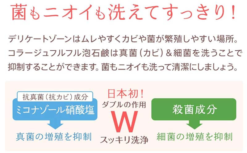 持田ヘルスケアの薬用ボディソープです。抗カビ成分のミコナゾール硝酸塩と殺菌成分のイソプロピルメチルフェノールの2つの有効成分を配合しています。