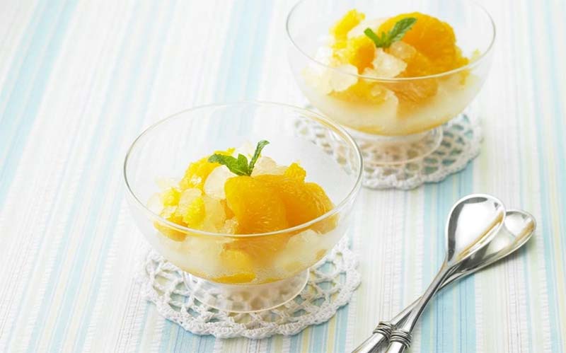 ゼラチンは必須アイテムです。 粉ゼラチンがあれば、みかん缶のシロップと合わせるだけで簡単にゼリーが作れます。 寒天を使えばよりヘルシーに仕上がります。